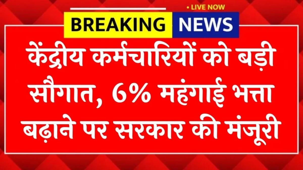 सरकार ने आज एक बड़ा ऐलान किया है, जिससे लाखों केंद्रीय कर्मचारियों और पेंशनभोगियों के चेहरे पर मुस्कान आ गई है। महंगाई भत्ता (DA) में 6 प्रतिशत की बढ़ोतरी को मंजूरी मिल गई है। यह निर्णय बढ़ती महंगाई के दौर में आर्थिक राहत प्रदान करेगा, क्योंकि इससे सैलरी और पेंशन में सीधा इजाफा होगा।